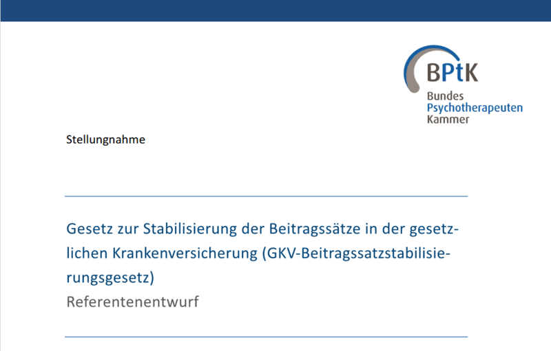BPtK zum Referentenentwurf des Beitragssatzstabilisierungsgesetzes
