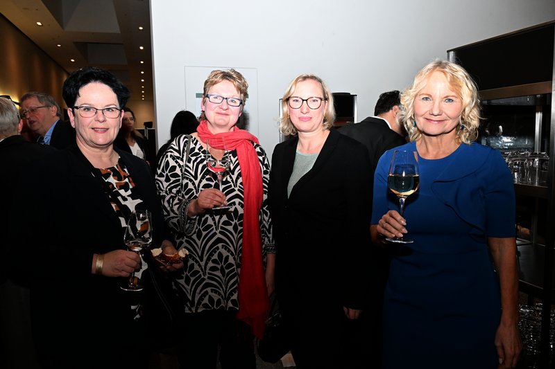Nach dem Bühnenprogram bestand die Möglichkeit zum Get-together und Netzwerken bei Wein und Brezeln im Foyer der Rheingoldhalle. Am Jahresempfang teilnehmen können geladene Gäste der veranstaltenden Kammern. Der Einladung der Landespsychotherapeutenkammer folgten fast 200 Gäste, darunter zahlreiche Weggefährt*innen aus Politik und Versorgung. Auch die LPK-Vizepräsidentin Dr. Andrea Benecke, die Vorstandsmitglieder Ulrich Bestle und Marcel Hünninghaus sowie Geschäftsführerin Petra Regelin nutzten die Gelegenheit für angeregte Gespräche. Besonders gefreut hat sich die Landespsychotherapeutenkammer über die Teilnahme der rund 80 Kammermitglieder, die sich sehr zufrieden über die Veranstaltung und Frau Maurs Part in der Talkrunde äußerten.